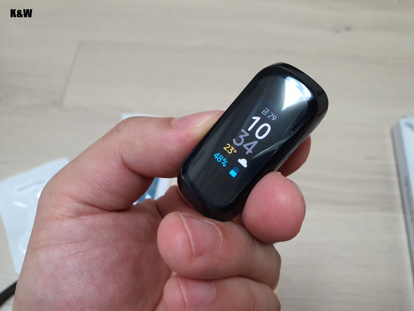 커버두께가 있다보니 작은 갤럭시핏을 좀 더 크게 보이게 하는 효과는 있습니다.