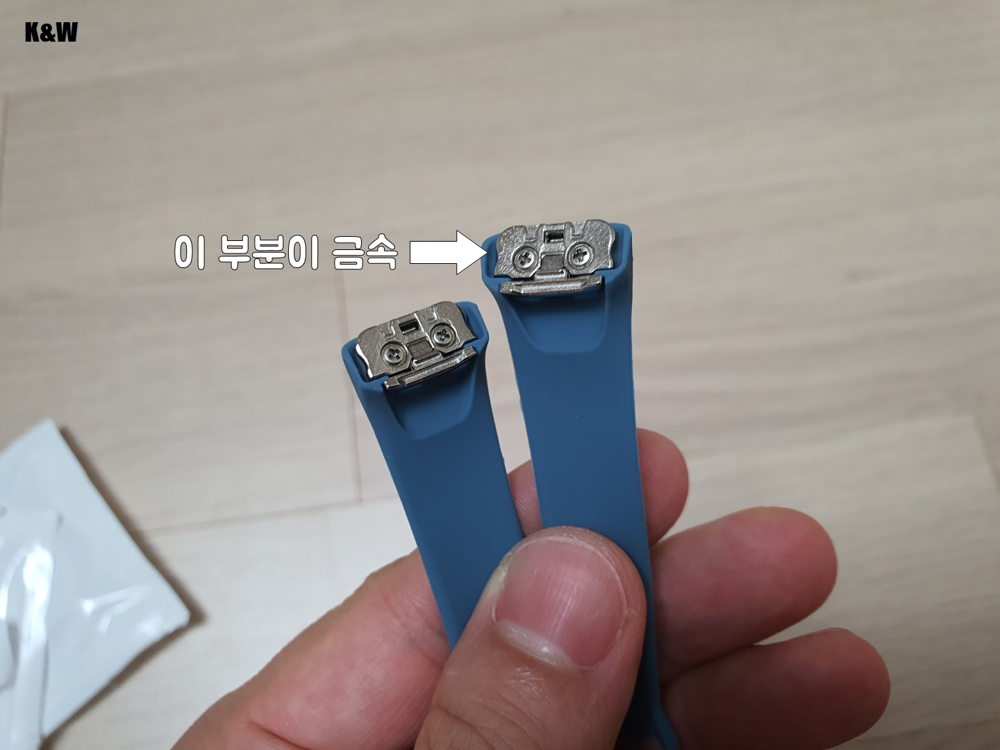 다른점이 있다면 시계줄 구멍의 크기가 다르며 위치도 차이가 있어서 정품보다 아주 약간 타이트합니다.