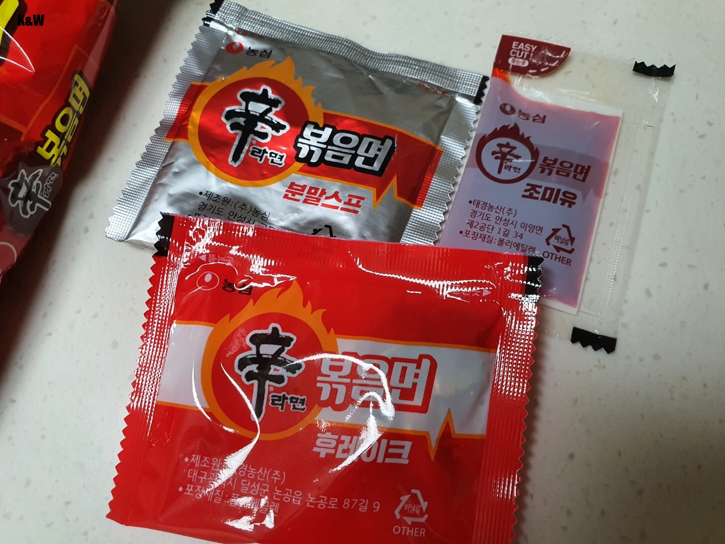 구성품은 이렇습니다. 기존의 신라면과 약간은 디자인이 다르게 나왔습니다.