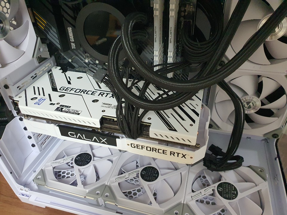 얼마전 데려온 갤럭시 3060 ex white입니다. 하얀색 컬러가 예쁜 그래픽카드죠!