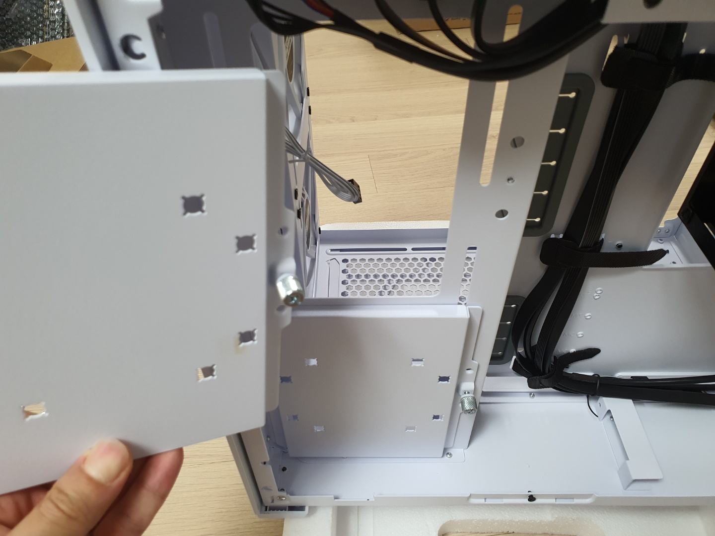 왼쪽에는 SSD를 추가적으로 달 수 있는데, 저는 수랭쿨러를 측면배치해야하기에 제거합니다.