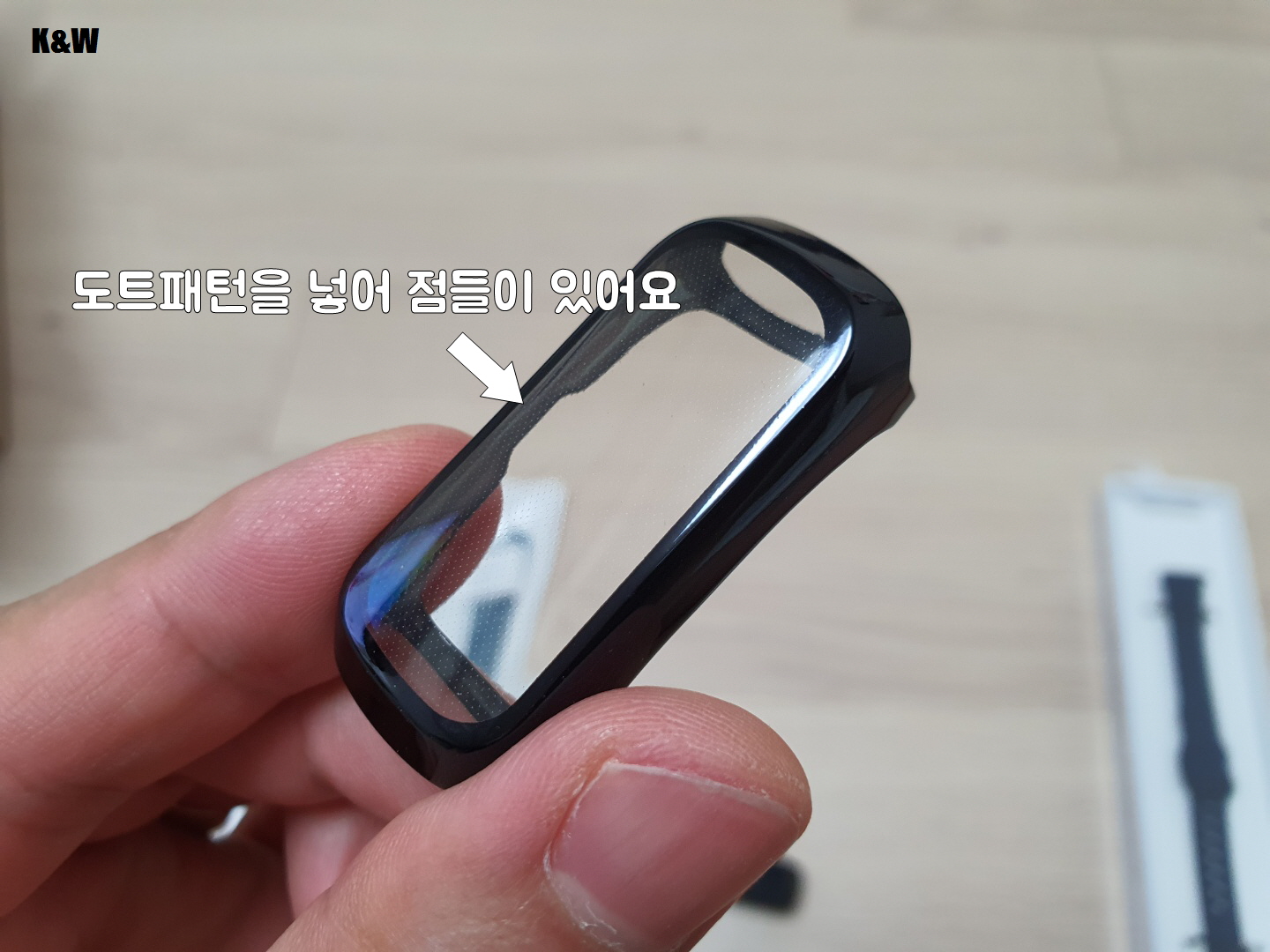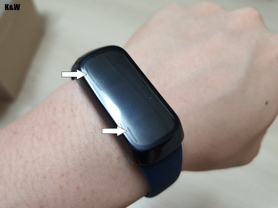 커버두께가 있다보니 작은 갤럭시핏을 좀 더 크게 보이게 하는 효과는 있습니다.
