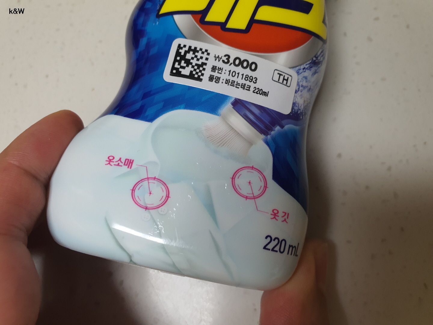 요 제품은 겉 표기에서 알 수 있듯 흰옷 옷깃의 누런 얼룩(때)를 효과적으로 제거해준다고 하여
