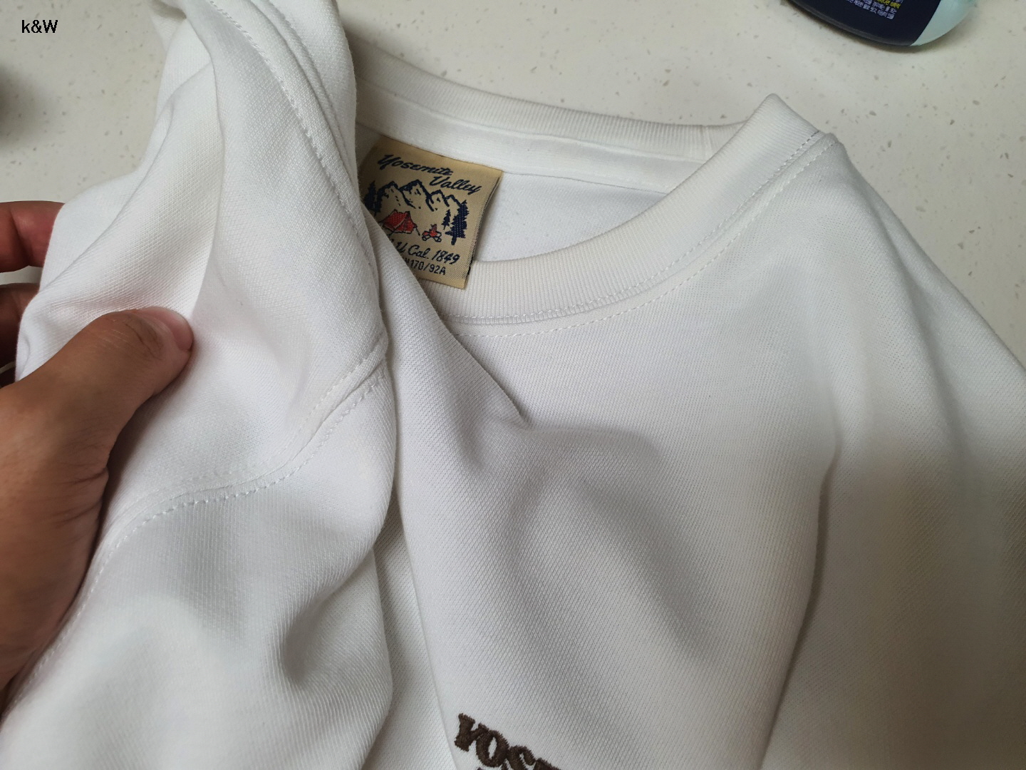 입은지 2년 째 인데, 옷깃의 끝쪽이 약간 누렇게 얼룩졌어요