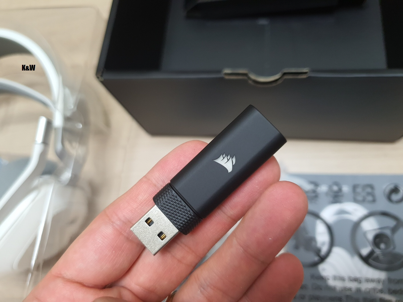 구성품은 USB 무선 트랜스미터(헤드셋과 무선 수신을 위한)와