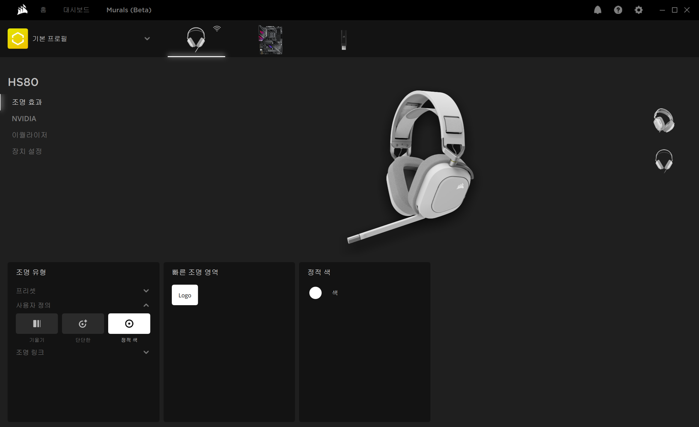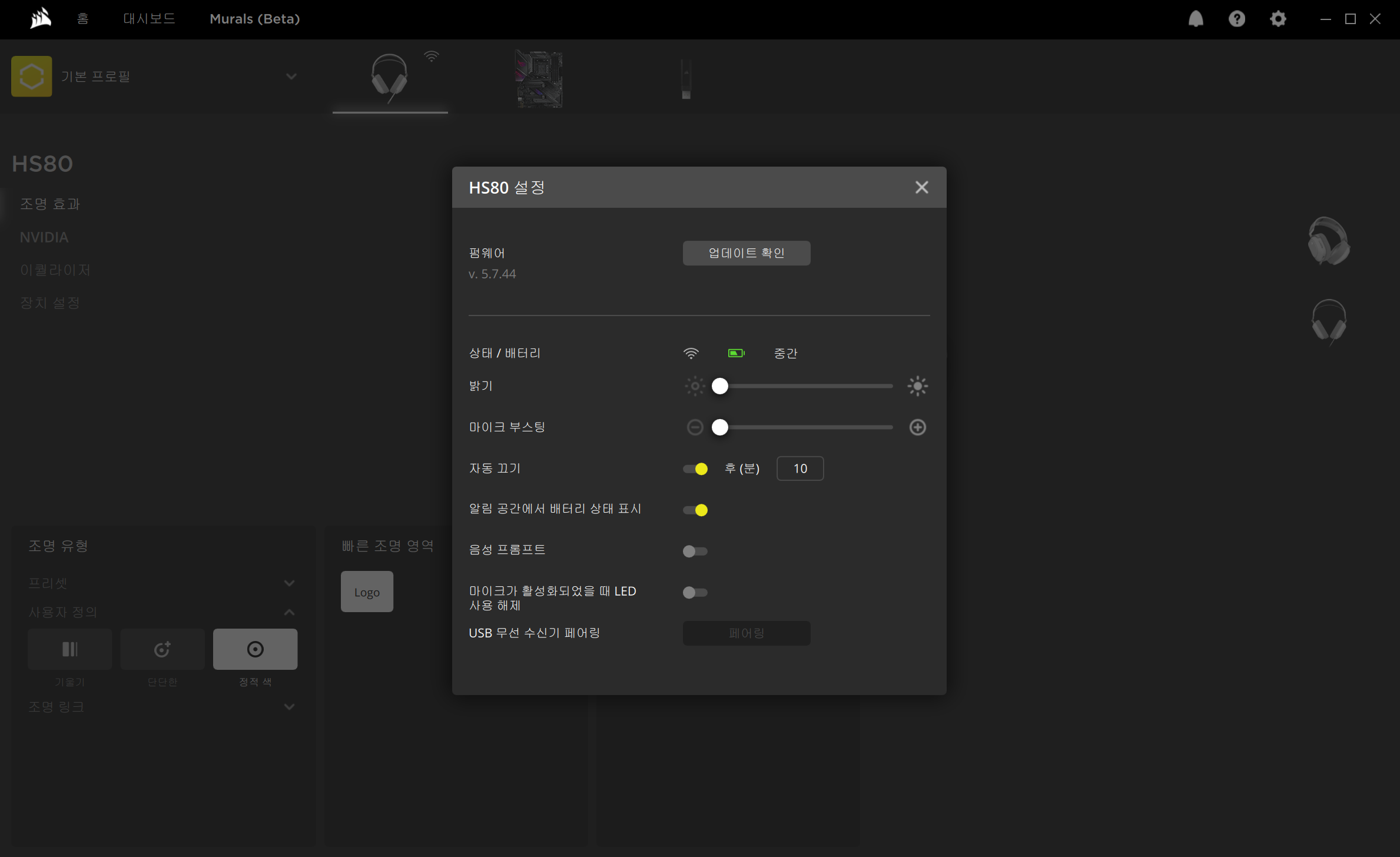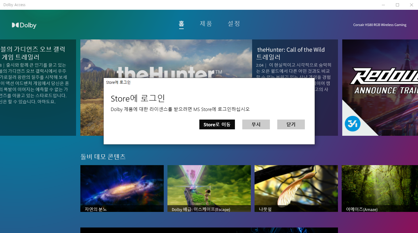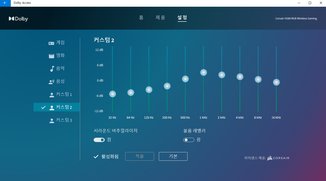 마지막으로 고민했던 부분은 HS80 제어 프로그램인 커세어 ICUE와 돌비 애트모스입니다.