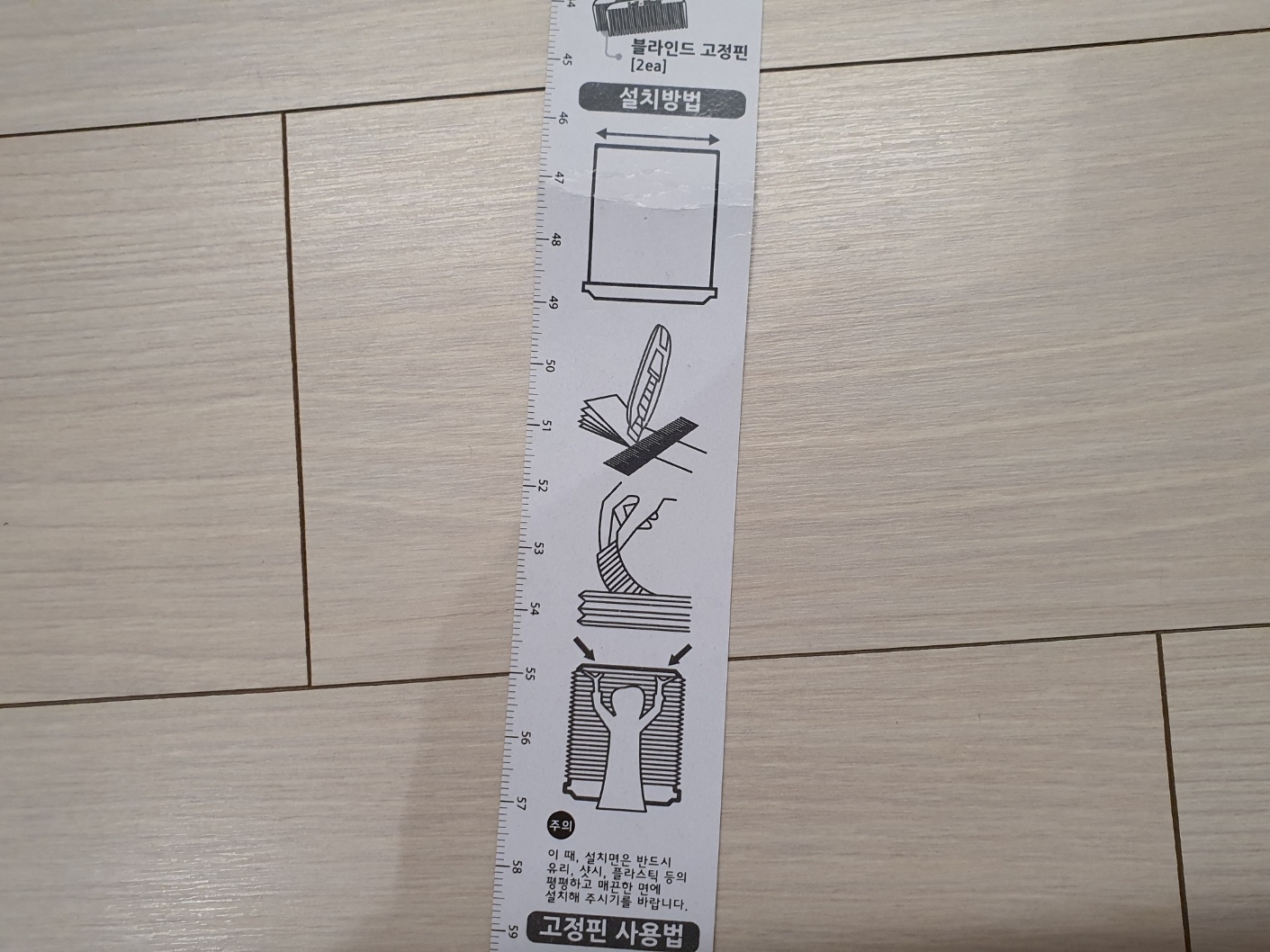 구성품은 블라인드와 블라인드를 내렸을 때 고정할 수 있는 벨크로, 고정핀 3가지 입니다.