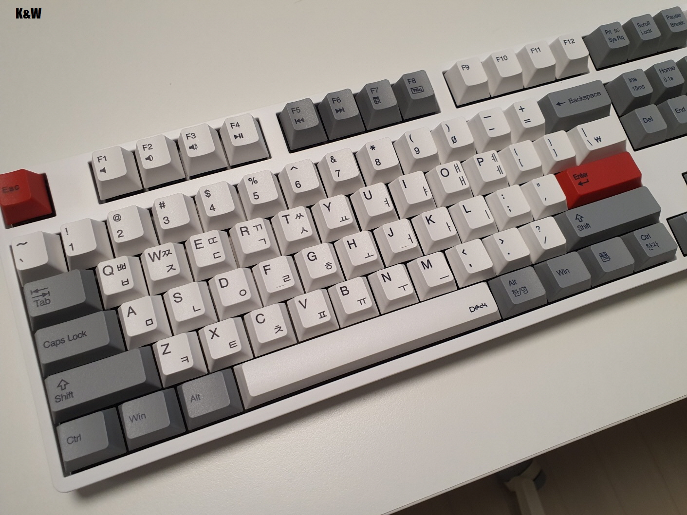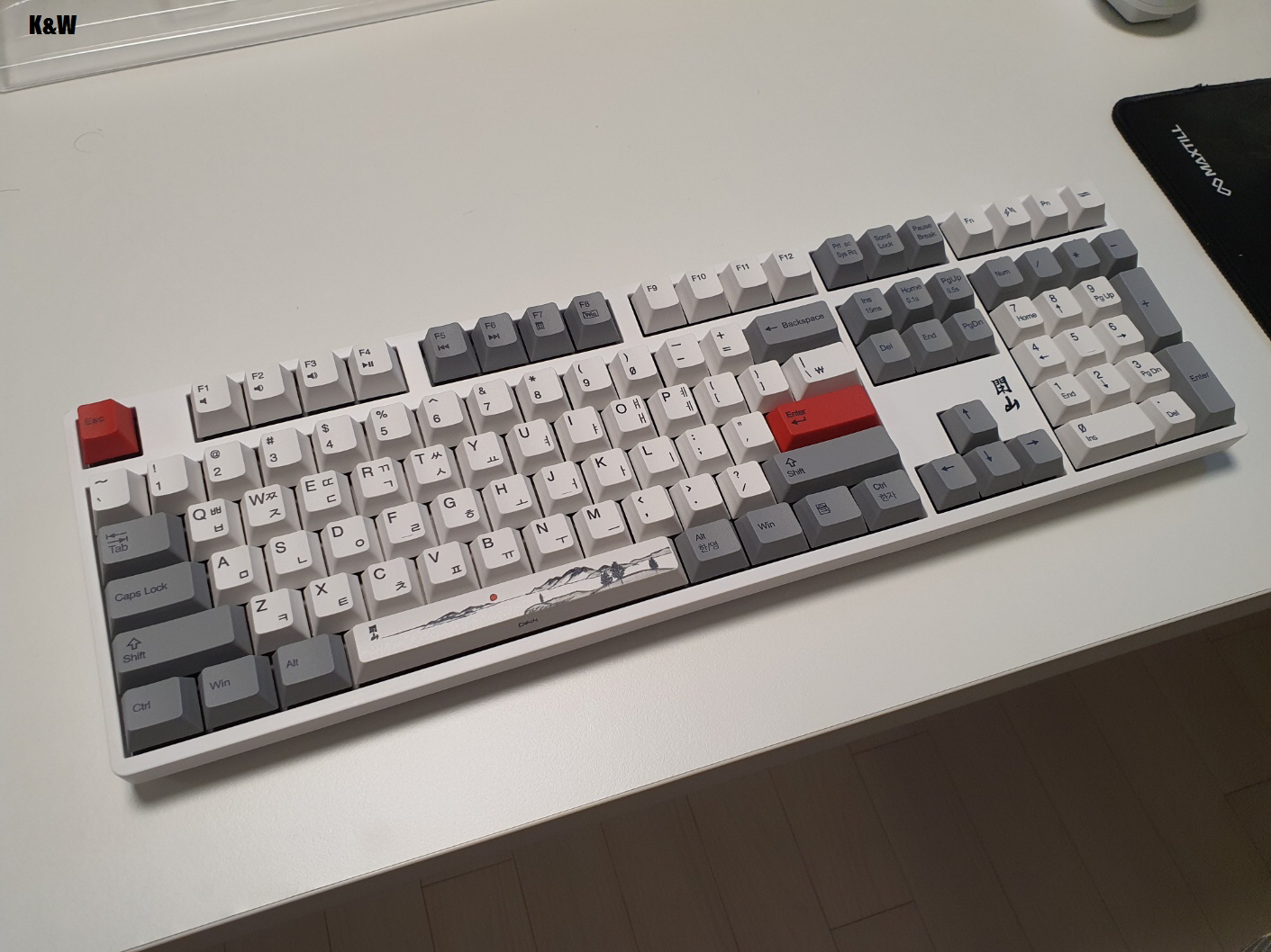 오른쪽은 새롭게 출시한 한산 키보드의 흰색 키캡입니다.