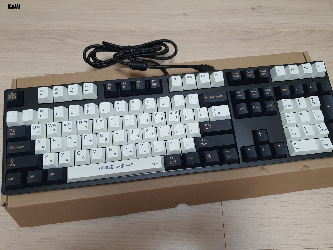 오른쪽은 새롭게 출시한 한산 키보드의 흰색 키캡입니다.