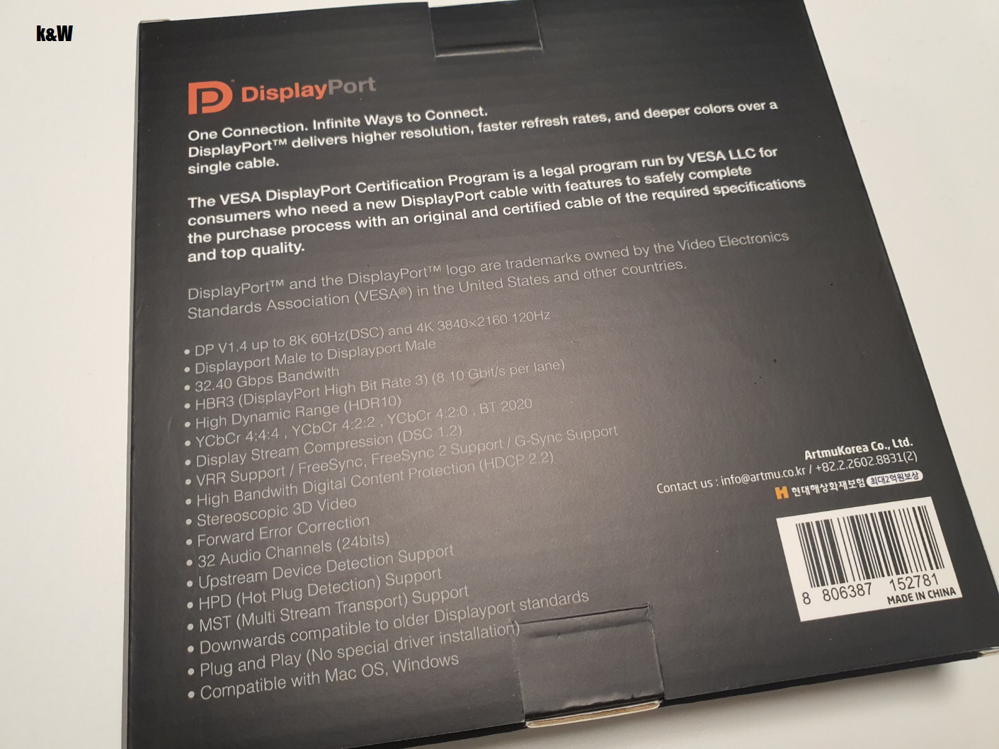 보증기간 2년까지 있는 아트뮤의 DP케이블.