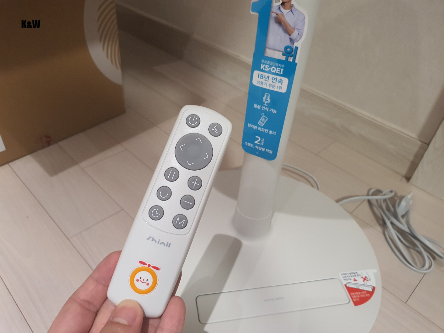 신일의 마스코트 캐릭터 웨디가 있는 리모컨.