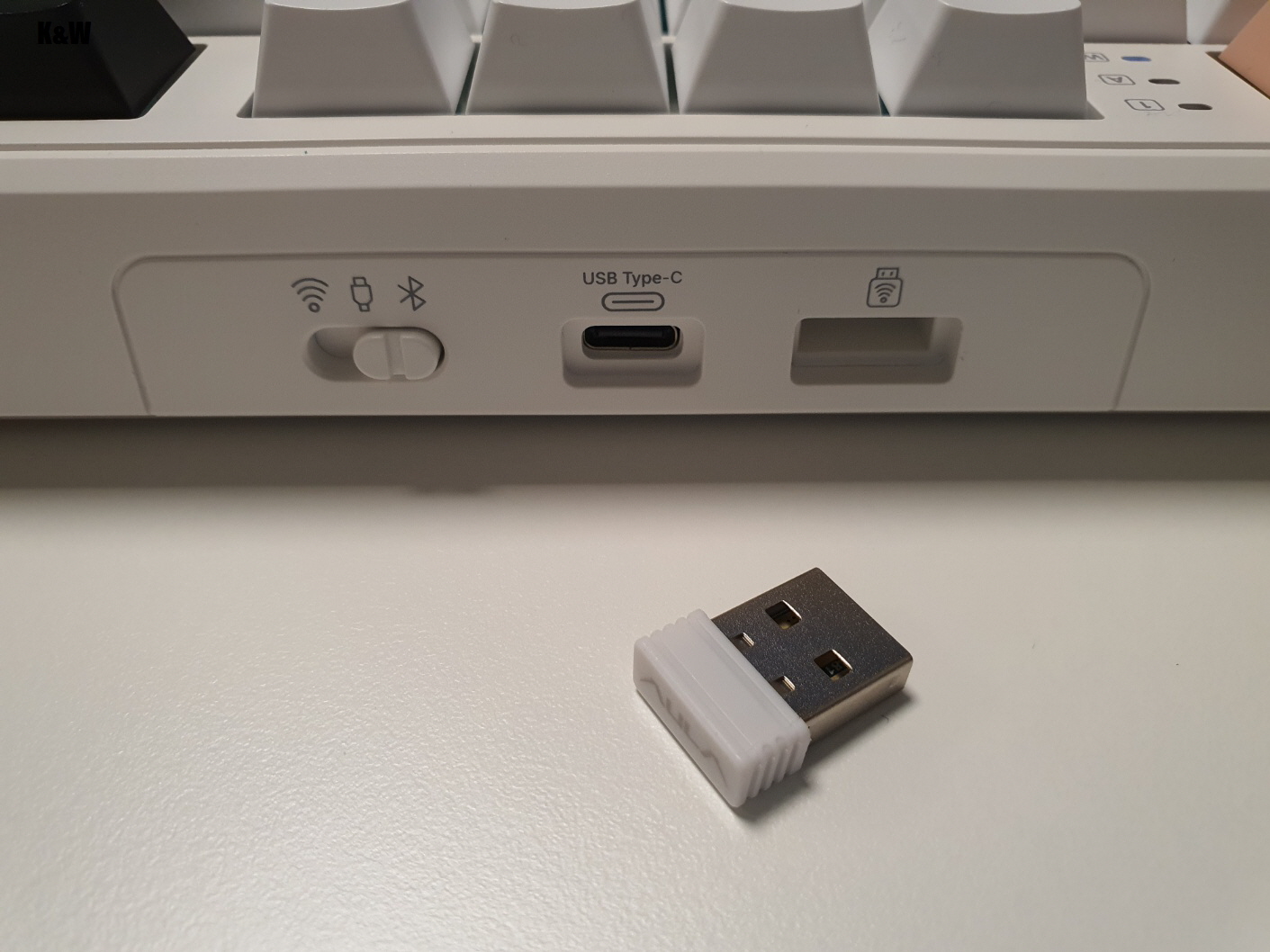 C타입 연결부와 2.4동글 수납함이 있습니다.