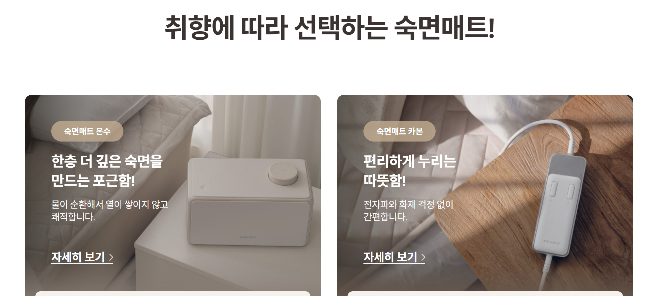 | 장점 | 전자파 영향이 없음(보일러제외) 은은하게 열이 몸을 감싸는 느낌 |