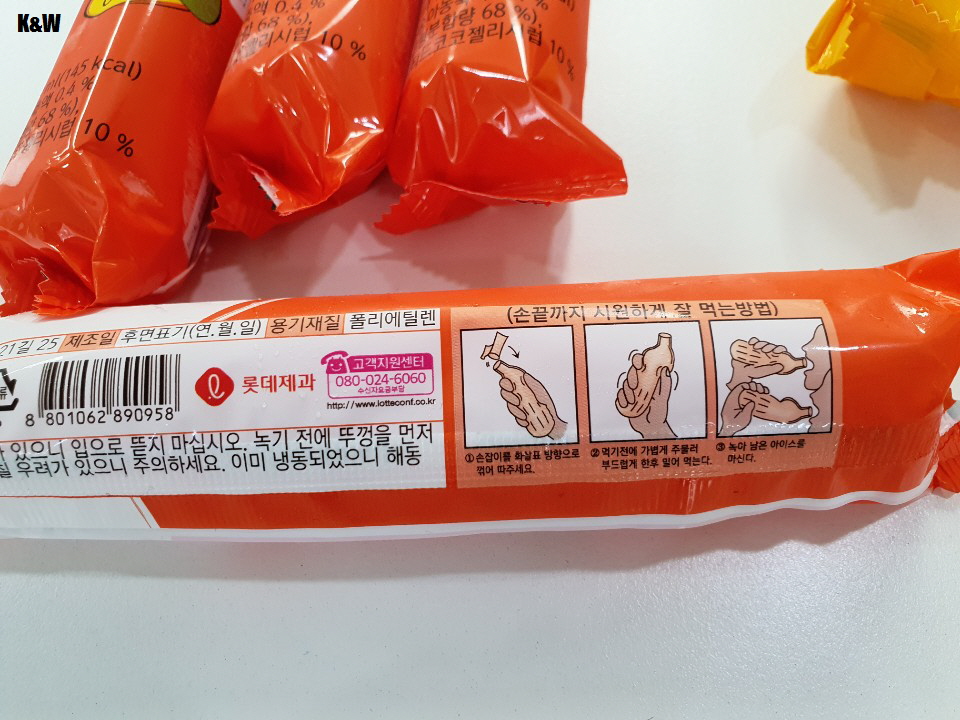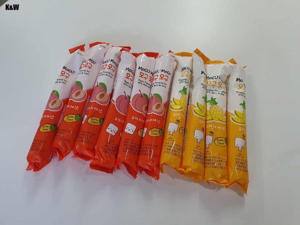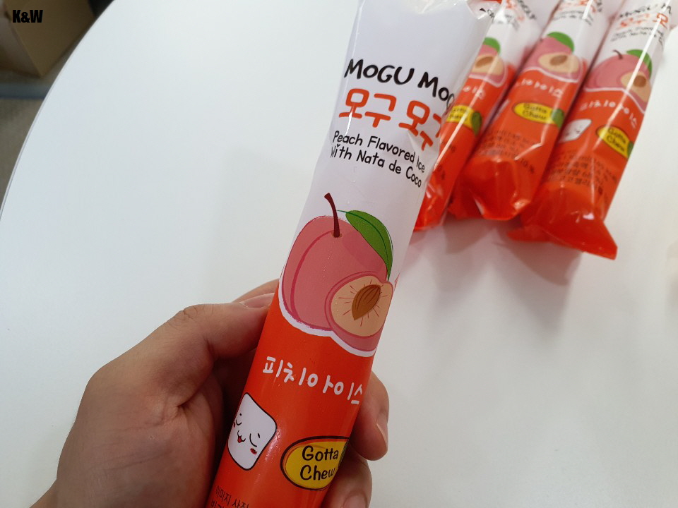 제가 고른건 피치아이스. 맛은 모구모구의 그것과 비슷하긴한데 역시나 달아요. 모구모구 처럼 안에 젤리가 들어있어요.