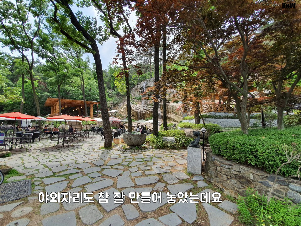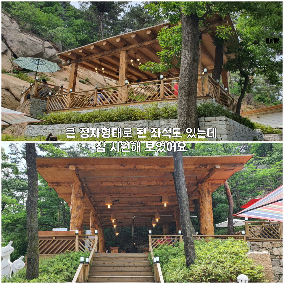 이 곳의 가장 큰 장점은 커피도 빵도 아닌 야외장소입니다. 큼지막한 폭포와 정자 두 채, 시원한 바람을 맞으며 앉으면 여느 휴양지 못지 않습니다. 게다가 건너편에 보이는 북한산 자락의 멋진 풍경은 그 정취를 더욱 아름답게 하는 것 같습니다. 폭포 소리도 시원하게 들리는 것이 아무 생각 없이 쉬기에 좋았습니다. 사람이 정말 많았는데, 그 이유가 무엇인지 완전히 느끼고 왔습니다.