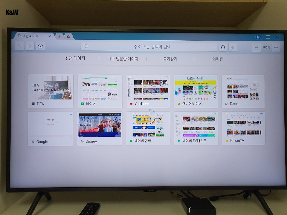 Wifi나 랜이 연결되어 있다면 인터넷 이용도 가능합니다. 리모컨에서 WWW버튼을 누르거나 홈버튼을 눌러 진입 가능합니다.