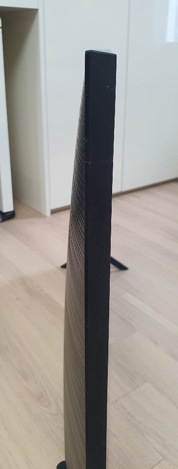 TV두께가 얇으면 얅을 수록 디자인적으로 멋지다고 생각은 하지만 사실 뒷면과 마찬가지로 보통 옆면을 보지는 않기 때문에 신경쓰이는 부분은 아니라고 생각합니다. 게다가 백라이트를 사용하는 LCD, LED TV는 어쩔 수 없는 부분이기도 하지요. 요즘 LG의 OLED TV에 비하면 두껍지만 감안해야 하는 부분이라고 생각합니다. 두께는 약 1.5cm이며 화면베젤은 1cm정도 됩니다.