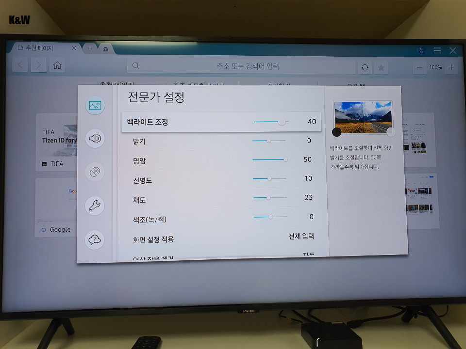그러나 적어도 TV제품은 중소기업의 것을 고른것이 실수였습니다. 나름대로 정보도 많이 찾았고, A급 패널이라는 홍보를 내세운 다나와 사이트 기준 1위 제품을 골랐지만 기대 이하였습니다. 화질은 여느 TV와 다르게 무언가 부자연스러웠으며, 밝기가 기본적으로 너무 높아서 눈이 부셨습니다. 화면설정에서 밝기를 낮추거나 색감 조정을 해보아도 패널 자체가 가지고 있는 능력이 부족했습니다. 중소기업 제품이 아무리 좋다고 해도 직접보고 구매하기 힘든 점이 문제였습니다.