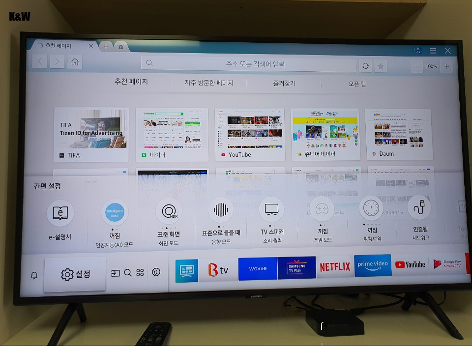 삼성 QLED TV를 구매한 것은 화질 때문이었습니다. 화질은 TV의 생명과도 같은 중요한 부분이 아닐까 합니다. 위 사진은 유튜브에서 4K 동영상을 찾아서 재생 후 찍은 사진입니다. 사진에서는 잘 나타나지 않지만 정말 선명하고 좋은 화질을 가지고 있습니다. 삼성의 플래그쉽 TV시리즈기 때문에 좋은 화질을 가지고 있는 것은 당연한 것이지만, 누구나 직접보더라도 감탄할 만한 화질입니다.